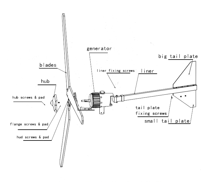 6、獨特的尾舵預偏設計,自動精確對準迎風方向,提高輸出功率同時兼顧調整和強風保護。
