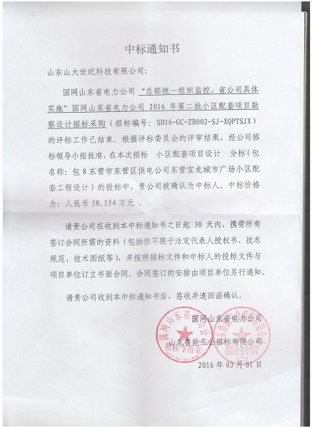 熱烈慶祝我公司中標 國網東營供電公司寶龍城市廣場小區(qū)配套設計項目