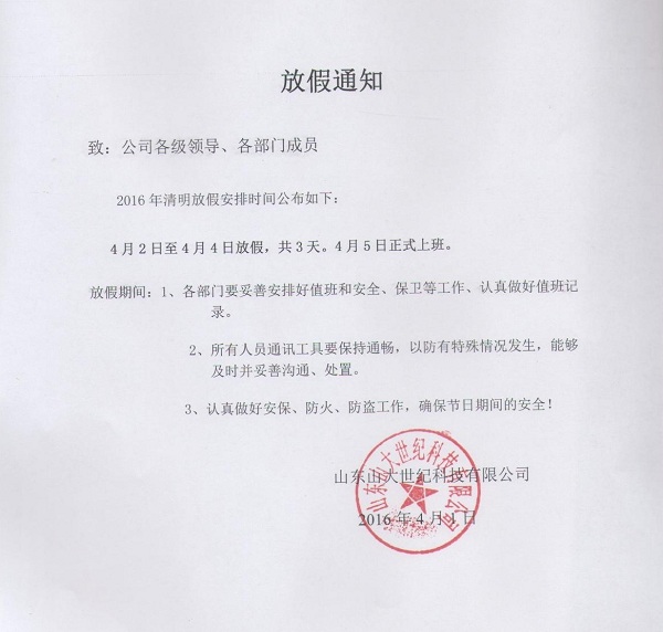 2016清明節(jié)放假通知