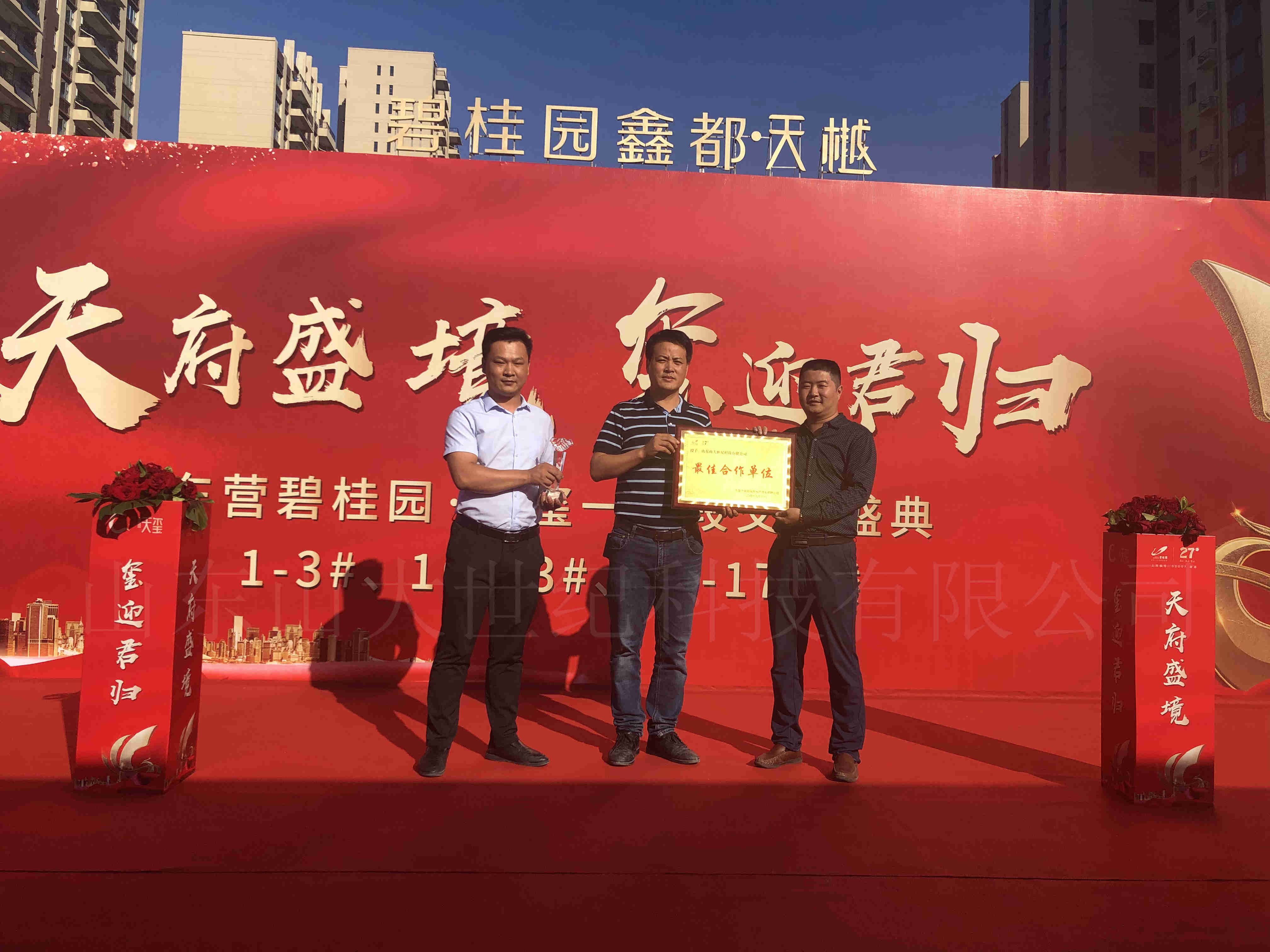 天的努力作業(yè),山東山大世紀(jì)科技有限公司按期完成東營(yíng)碧桂園天璽項(xiàng)目的送電,在諸多合作單位中,山東山大世紀(jì)科技有限公司被東營(yíng)市碧桂園房地產(chǎn)開發(fā)有限公司授予“最佳合作單位”榮譽(yù)稱號(hào)。