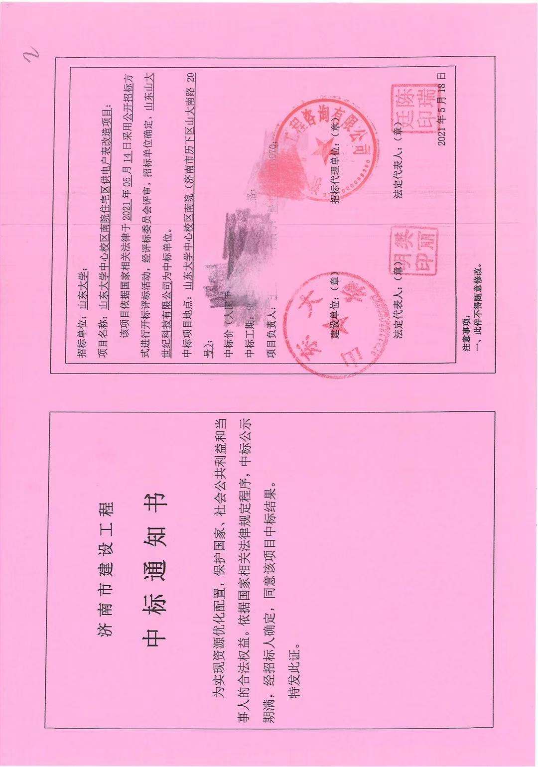 喜訊:山大世紀中標山東大學中心校區(qū)南院住宅區(qū)供電戶表改造項目