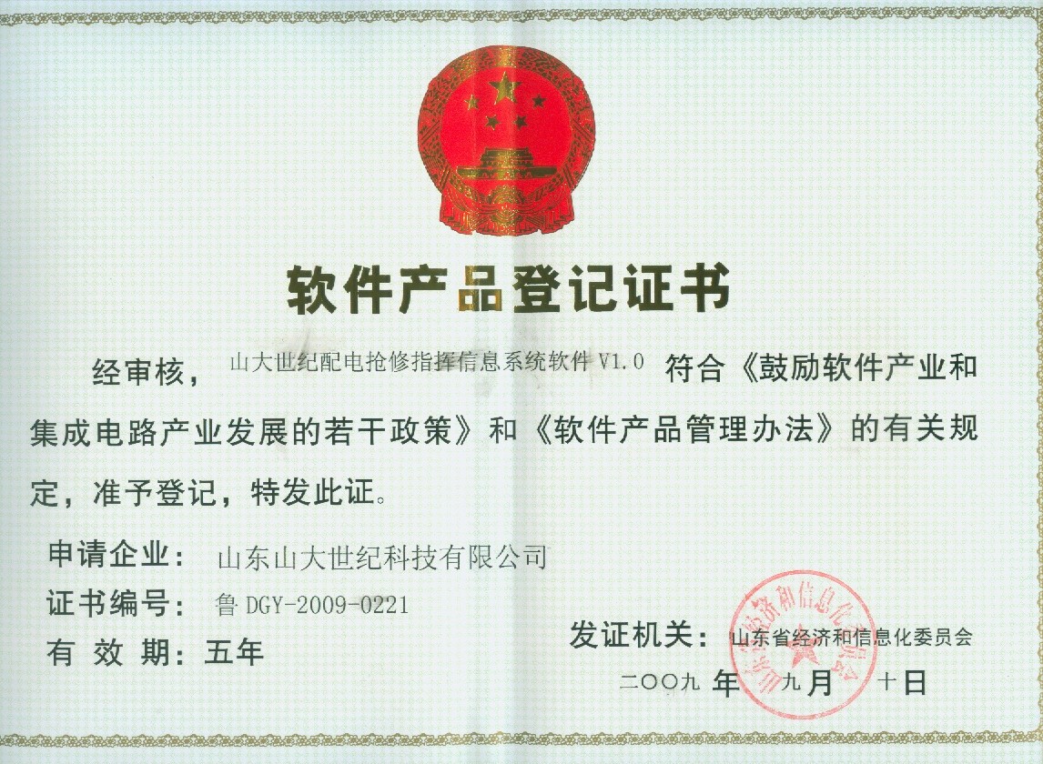 配電搶修指揮信息系統(tǒng)軟件_軟件產(chǎn)品登記