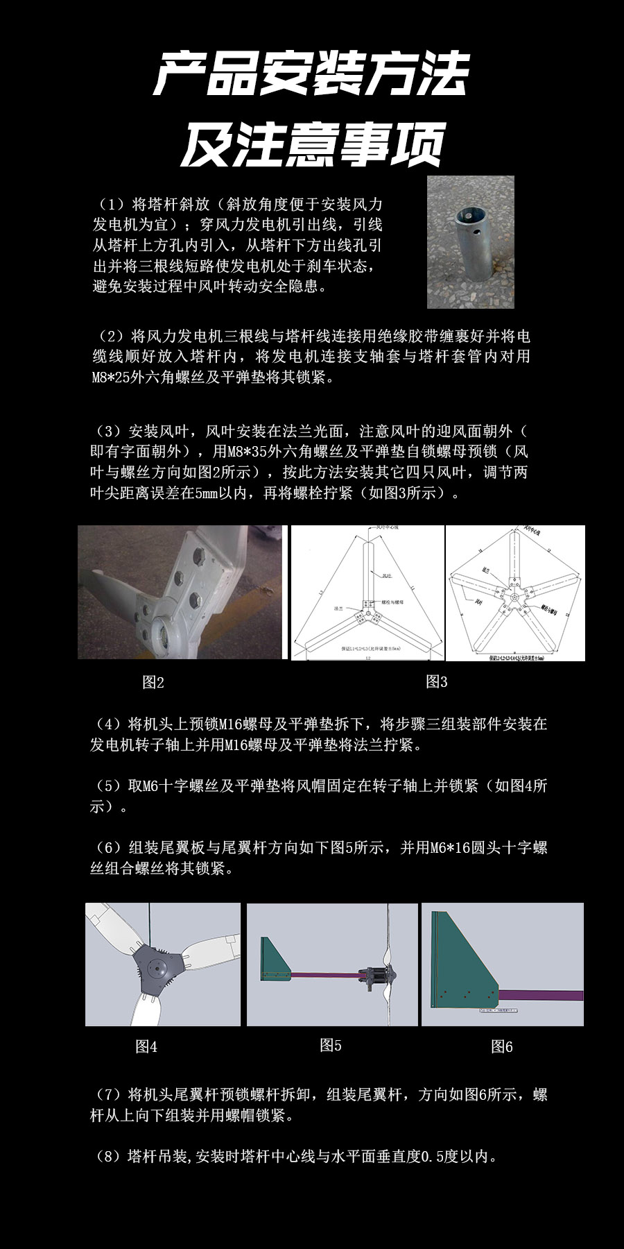 8、采用自動對風(fēng)裝置,使風(fēng)力發(fā)電機自動調(diào)整對準(zhǔn)迎風(fēng)方向,兼顧調(diào)向靈敏性和穩(wěn)定性,風(fēng)力較大情況下發(fā)電機尾翼斜置限速保護風(fēng)機不受損。