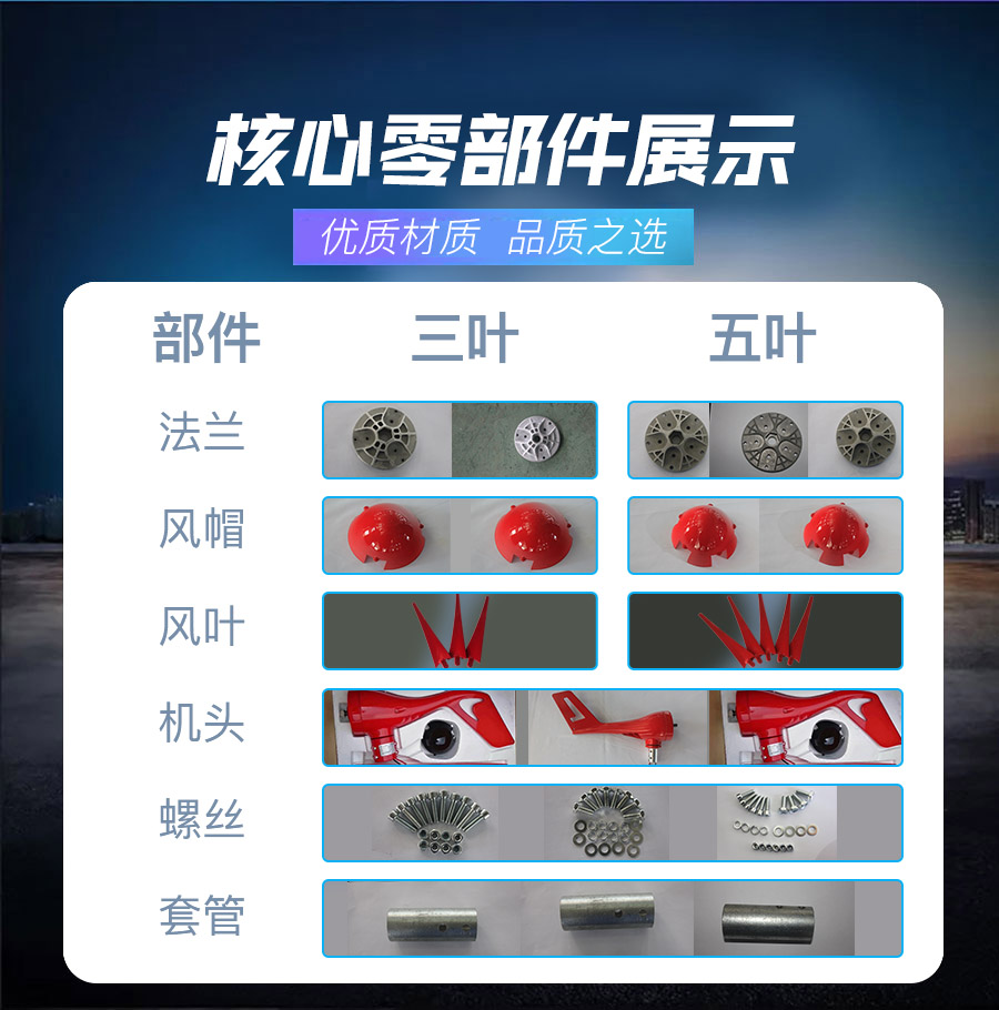 3、風(fēng)葉采用高強(qiáng)度復(fù)合材料,強(qiáng)度高,韌性好,防紫外線,防腐蝕,抗大風(fēng),具有良好的氣動性能。